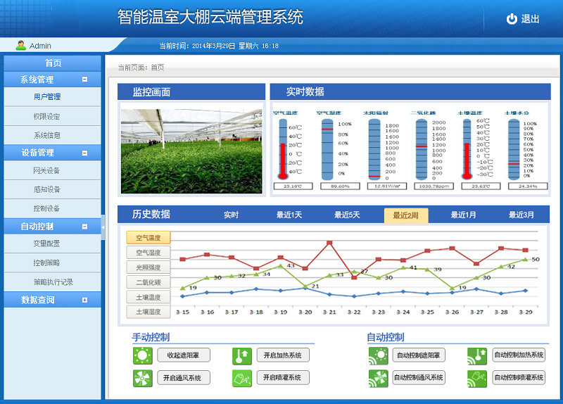(1) 系统通过先进的远程工业自动化控制技术,让用户足不出户远程控制温室设备。